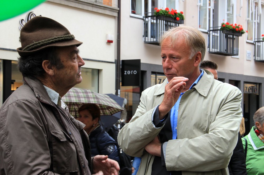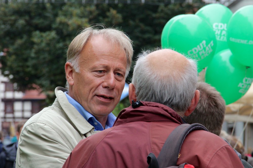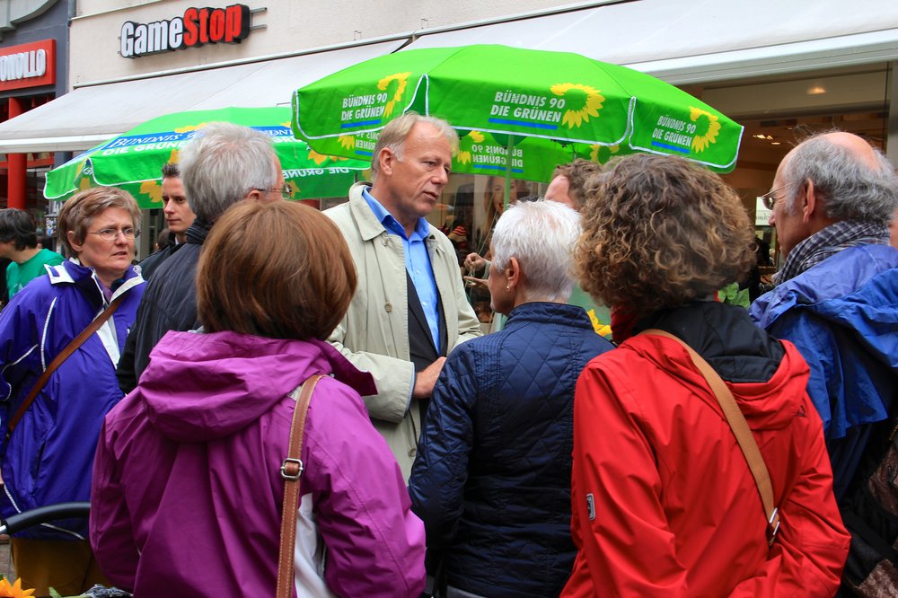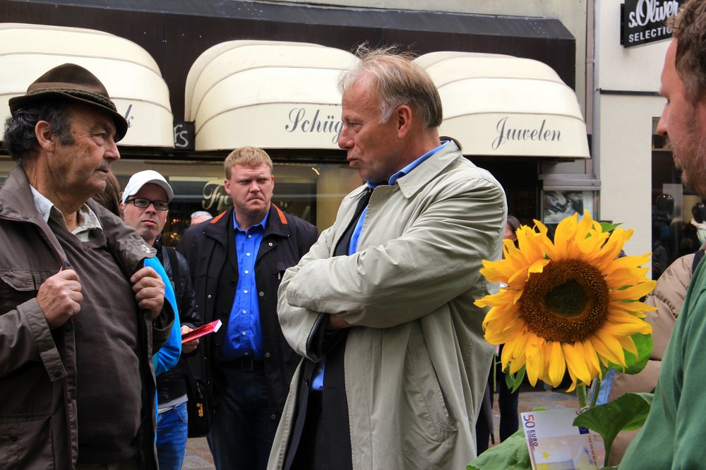 Vergangenen Samstag besuchte Jürgen Trittin seinen Wahlkreis und verschenkte Hunderte von Sonnenblumen an die Passanten.