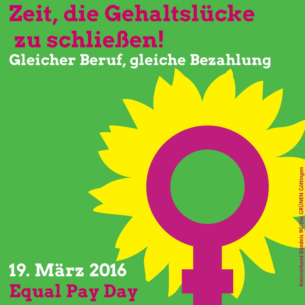 „Es darf im Deutschland des 21. Jahrhunderts keinen Unterschied in der Bewertung der Arbeit von Frauen und Männern geben“, fordert Marie Kollenrott, Sprecherin des Kreisvorstandes von Bündnis 90/DIE GRÜNEN Göttingen zum Equal Pay Day am kommenden Samstag.