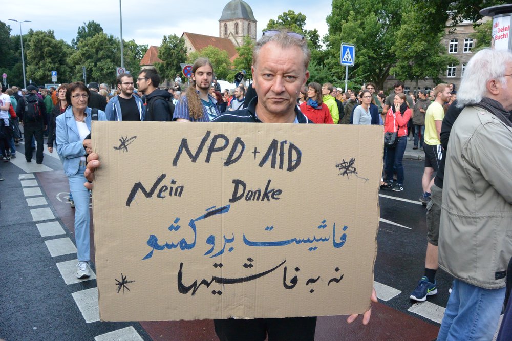 Bei der gestrigen Demonstration gegen die Mahnwache des Freundeskreis Thüringen e.V. an der Stadthalle konnten die wenigen Freundeskreis-Anhänger von den Gegendemonstranten erfolgreich übertönt werden. Das war das Ziel, denn Nazi-Parolen werden hier nicht toleriert. Von der Anwendung von Gewalt, gleich von welcher Seite ausgehend, distanzieren wir uns.