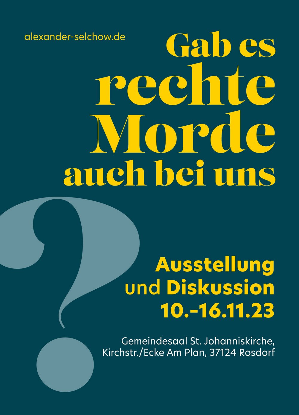 In der Neujahrsnacht 1990/91 wurde der 21 Jahre alte Rosdorfer Alexander Selchow auf dem Nachhauseweg von zwei rechtsextremen Tätern durch Messerstiche so schwer verletzt, dass er verstarb. Grund des Angriffs war die antifaschistische Haltung des Getöteten. Die damaligen Täter kamen aus Netzwerken von Neonazis, die noch heute aktiv und maßgeblich für zahlreiche Gewalttaten im Landkreis Göttingen verantwortlich sind. So ist der damals zur gleichen Neonazi-Gruppe wie die Täter gehörende Torsten Heise heute einer der führenden Naziaktivisten in Deutschland und laut Verfassungsschutzbericht dem rechtsterroristischen Spektrum zuzuordnen.