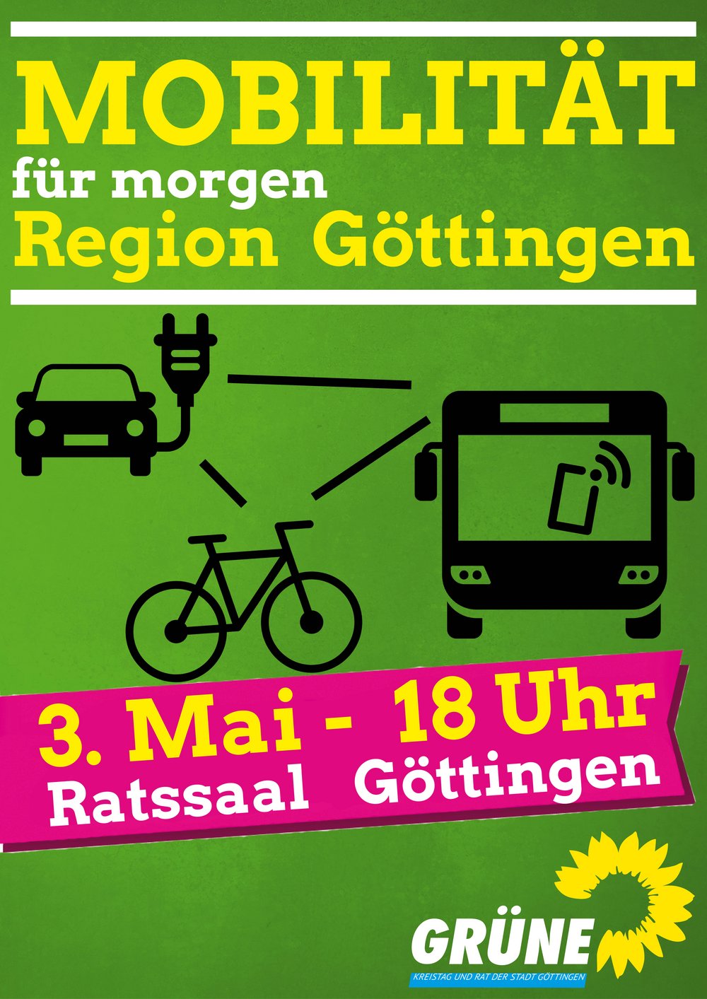 Für die GRÜNEN Fraktionen von Stadt und Landkreis Göttingen ist die Veränderung der Mobilität als DAS Thema der angelaufenen Ratsperiode. Hier wollen sie entscheidende Akzente für eine nachhaltige Mobilität setzen – damit Klimaschutzziele erreicht, die ländliche Bevölkerung mobil und die Stadtbevölkerung gesund bleibt.