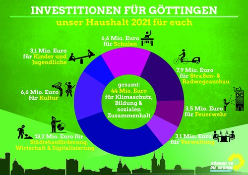 475 Millionen Euro nimmt die Stadt Göttingen im Jahr 2021 ein. Die Ausgaben belaufen sich auf rund 500 Millionen Euro. Zeit zum Sparen, könnte man denken. Wir sind aber davon überzeugt, dass wir genau jetzt klug investieren müssen, um die Folgen der Corona-Krise ein wenig zu puffern.