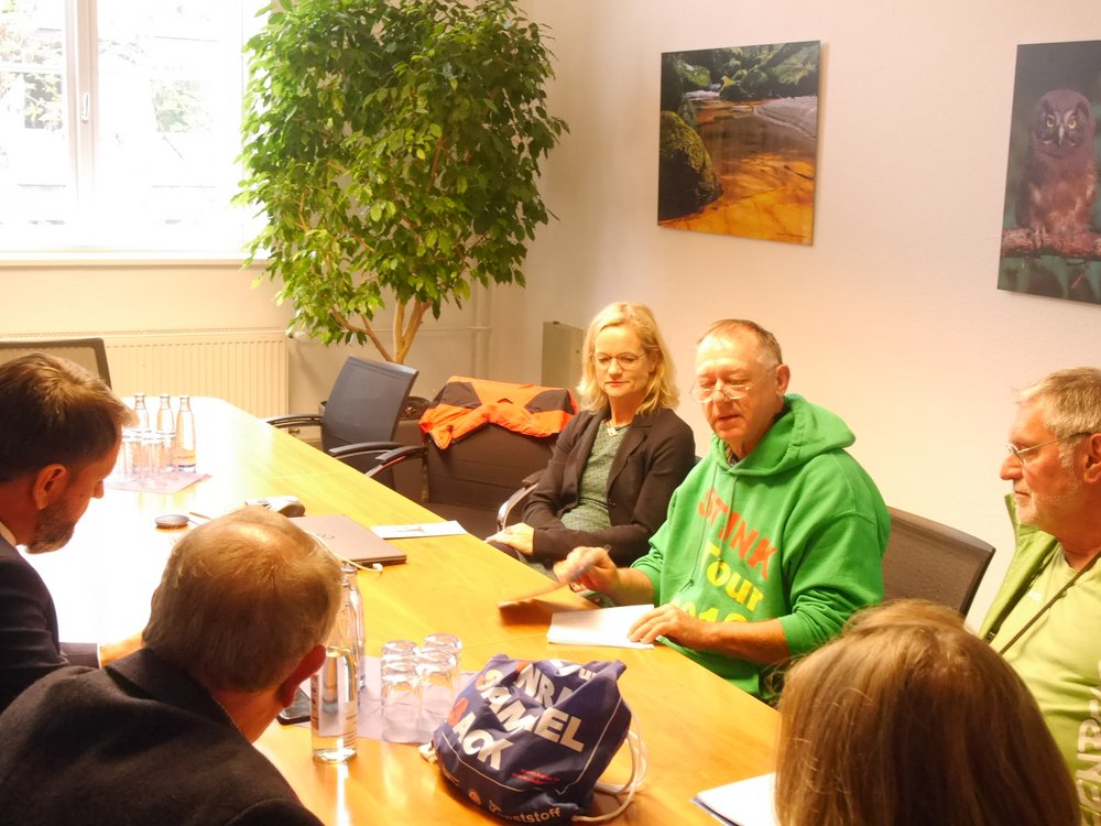 Auf der sog. "STINKTour" waren bereits einige Treffen mit Politiker*innen und Menschen aus den Verwaltungen für das Duo Kajak/Rad möglich: Am 02.05. stand ein Besuch beim derzeitigen Umweltminister Lies in Hannover und der Umweltdezernetin der Stadt Hannover, Tegtmeier-Deppe (GRÜNE) an. Leineabwärts wurden die Bürgermeister der Städte Neustadt am Rübenberge und Verden/Aller besucht. In Schwarmstedt die Samtgemeindeverwaltung kontaktiert.