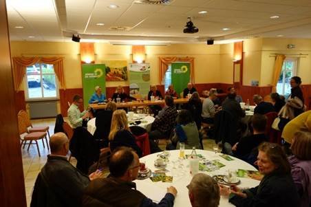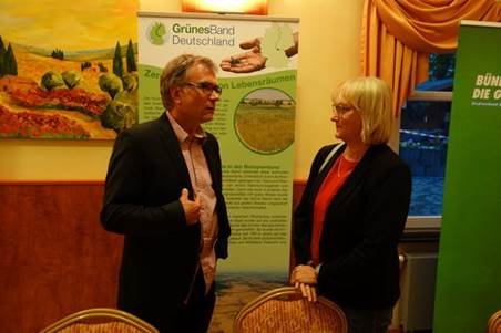 Bettina Hoffmann, MdB aus Nordhessen und umweltpolitische Sprecherin der Bundestagsfraktion B90/GRÜNE gab einen Input zu den 1.293 Kilometern des früheren innerdeutschen Grenzgebietes mit 600 gefährdeten Tier- und Pflanzenarten. 30% der Fläche in diesen Regionen ist noch ungeschützt. Hier sind dringend Fördermittel und auch Förderung von naturverträglichem Tourismus nötig. Nicht aus den Augen verlieren sollte man außerdem die Pflege des Europäischen Grünen Bandes entlang des „Eisernen Vorhangs“, der die Grenzen zwischen Ost und West Jahrzehnte lang unpassierbar machte.