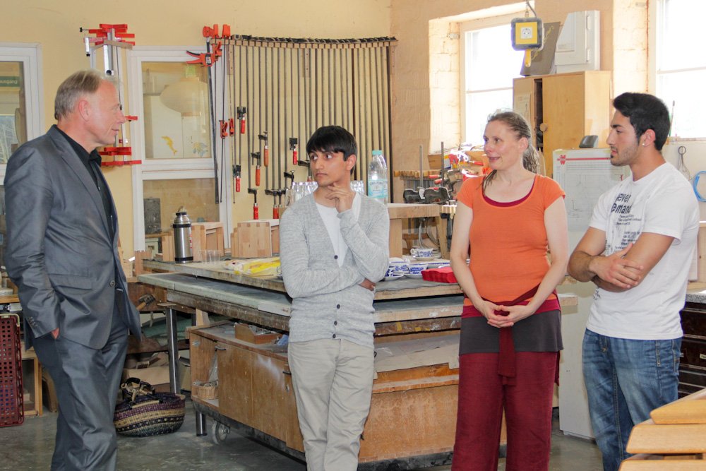 Jürgen Trittin startete die Deutschland-ist-erneuerbar-Tour am 18. Juni in seinem Wahlkreis, wo er die Tischlerei Baur in Groß Schneen besuchte. Dort sprach er mit Milos Ilic und Nino Novakovic. Beide sind Asylbewerber, arbeiten in der Tischlerei und berichteten über ihre Probleme. Trotz hervorragender Schulnoten und einer Berufsausbildung haben sie enorme Schwierigkeiten, in Deutschland bleiben zu können.