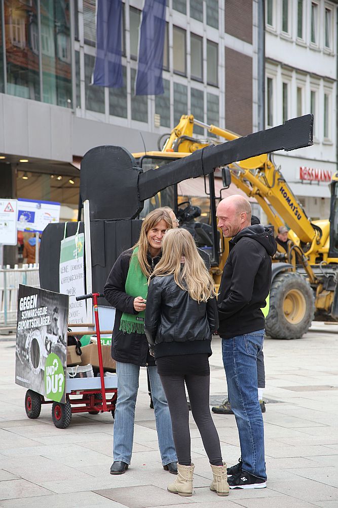 Dabei ist ein Umdenken längst nötig. Wir brauchen endlich einen Lieferstopp von Rüstungsgütern an Diktatoren und in Krisengebiete und mehr Kontrolle für das Parlament und Transparenz bei Waffenexporten. Es darf nicht sein, dass die Entscheidungen über solche Geschäfte weiter geheim am Parlament vorbei getroffen werden. Deshalb ließen sich die Aktiven auch nicht vom ungemütlichen Wetter aufhalten, verteilten Informationen und überzeugten Bürger von den GRÜNEN Reformvorschlägen.