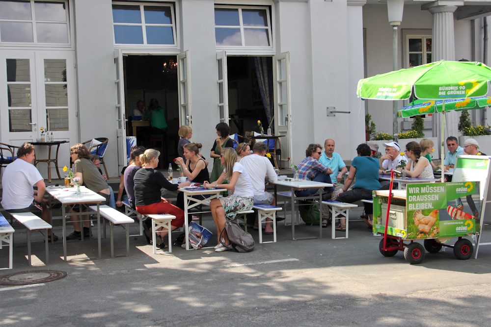 Bei bestem Biergartenwetter, Kaffee und Kuchen stimmten die Göttinger GRÜNEN auf dem Wochenmarktplatz per Urnenwahl über ihre wichtigsten Themen für den Bundestagswahlkampf ab.