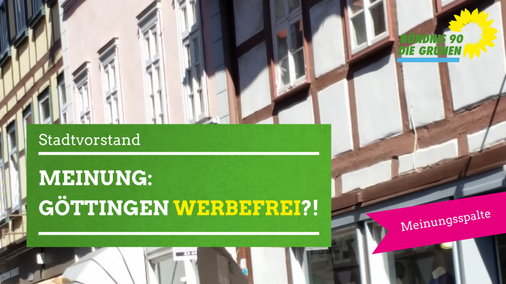 Deshalb unterstützt der Stadtvorstand der Göttinger Grünen bereits seit 2018 die Initiative "Göttingen werbefrei" und fordert auch die Parteien im Stadtrat auf, sich der Problematik bewusst zu werden und zu handeln. Auch wenn ein solches Werbeverbot erst mal radikal erscheinen mag, könnten die frei werdenden Flächen aus unserer Sicht so viel besser genutzt werden: Grenoble ist aus unserer Sicht als erste Stadt in Europa ohne Außenwerbung mit ihrer Förderung von, Kultur, Natur und der Kreativität von Bürgerinnen und Bürgern der Stadtgesellschaft ein tolles Vorbild für Göttingen.