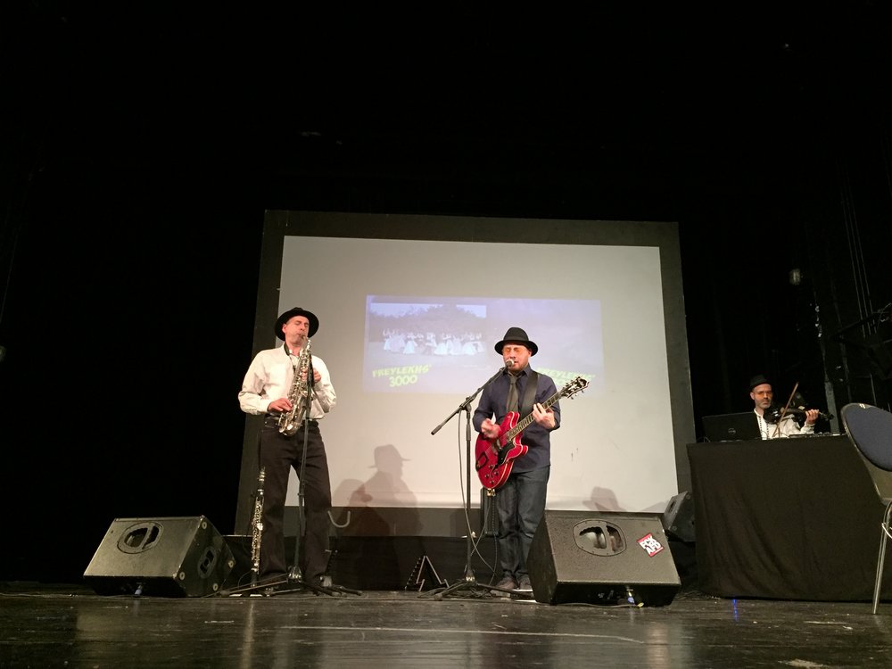 Politics meets music - unter diesem Motto stand unsere grüne Wahlkampfabschlussveranstaltung gestern im Jungen Theater. Dabei waren Musik und Politik locker ineinander verzahnt, mit abwechselnden Songeinlagen und Polittalk-Einheiten. Die Klezmerband Freyleikhs 3000 brachte nicht nur beschwingte Musik auf die Bühne, sondern ließ auch immer wieder ihre politischen Wurzeln durchblicken: Verfolgung und Diaspora , Musik auf Reisen als wiederkehrendes Motiv.