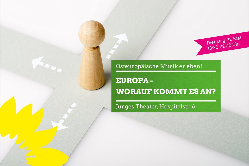 Bei unserer Wahlkampf-Höhepunktveranstaltung am 21.5. ab 18.30 Uhr im Jungen Theater werden wir Balkanmusik und Schilderungen zur aktuellen osteuropäischen Lage hören. Die Band Yuriy Gurzhy und Freyleikhs 3000 spielt zu Beginn; gemeinsam mit der ehemaligen Europagrünen Rebecca Harms und dem Publikum wollen wir Ideen und Vorstellungen von Europa aus Ost und West austauschen und diskutieren.