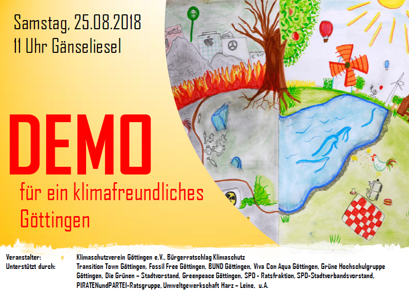 Im Rahmen der Klimaschutztage rufen der Göttinger Stadt- und Kreisvorstand der GRÜNEN dazu auf, an der Demonstration am 25.08.2018 für ein klimafreundliches Göttingen teilzunehmen.