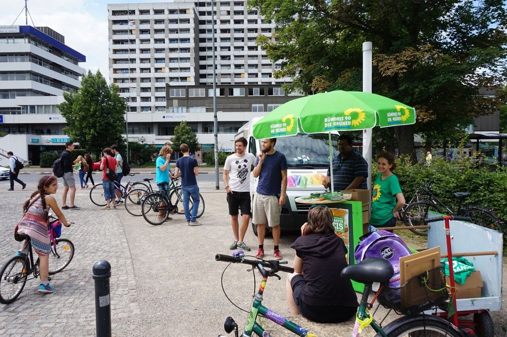Mit einem Eiswagen haben wir uns gestern vor dem Zentralcampus postiert und Studierende an die bevorstehende Bundestagswahl und die Möglichkeit zur Briefwahl erinnert. Dazu gab es grünes Eis und nette Gespräche mit den grünen Wahlkämpfern.
