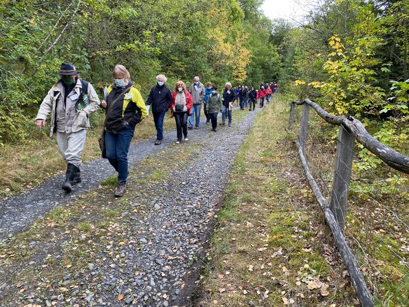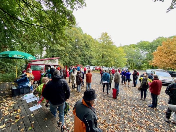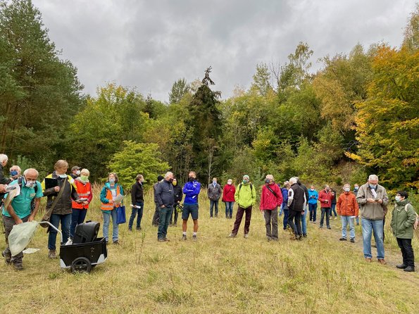Der Samtgemeindeverband B`90 / Die GRÜNEN Dransfeld veranstalteten am Sonntag, den 27.09. bei angenehmem herbstlichen Wetter einen Spaziergang am Hohen Hagen. Ca. 60 Teilnehmerinnen und Teilnehmer umrundeten das Gelände, das durch Kreistagsbeschluss aus dem Landschaftsschutzgebiet (LSG) herausgelöst worden ist. An acht Stationen gab es Informationen und immer wieder die Möglichkeit, Fragen zu stellen zu verschiedenen Aspekten der problematischen Planung eines Seilrutschenparks. Etliche Fachleute von verschiedenen Verbänden und Einrichtungen, sowie der Projektierer Christoph Brand von der Schattenspringer GmbH aus Bielefeld waren anwesend, um den interessierten Teilnehmer*innen mit ihren Statements, Meinungen, Befürchtungen, aber auch Zielsetzungen und Planungen zu vermitteln. Nachdem im Sommer der Kreistag mehrheitlich – aber ohne die Stimmen der GRÜNEN Fraktion – die Herausnahme von 22ha beschlossen hat beabsichtigen Samtgemeinde und Stadt Dransfeld zügig die Aufstellung eines Flächennutzungsplans (F-Plan) und eines Bebauungsplans (B-Plan) sowie die Abfassung eines städtebaulichen Vertrages zwischen der Stadt Dransfeld und der Schattenspringer GmbH. Der Versuch der Dransfelder Verwaltung, das Genehmigungsverfahren zügig durchzuziehen, ist nicht unumstritten. Vielen Menschen in der Samtgemeinde dämmert es erst jetzt, dass aus der früheren Absicht, einen Hochseilgarten oder einen Kletterwald am Hohen Hagen anzulegen, inzwischen die Idee eines Seilrutschenparks geworden ist, der nicht nur für die Region, sondern - so der Projektierer - eine deutschlandweite Ausstrahlung erreichen soll. Den Kern des geplanten Freizeitparks bilden ca. 20 Seilrutschen, die von alle Seiten den alten renaturierten Steinbruch mit seinem besonderen Geologiepfad überspannen. Hinzu kommen eine 750m lange Fly-Line, Wallrunning am Gaußturm und eine Freefall Anlage. Damit - so Christoph Brand - wäre das dann eine europaweit einmalige Attraktion.