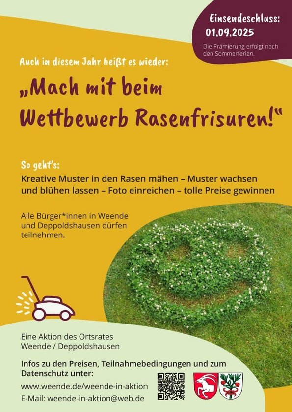 Im Jahr 2024 konnte unser Antrag überzeugen, einstimmig beschloß der Ortsrat den Wettbewerb "Rasenfrisuren" auszuschreiben und finanzierte 3 Preise aus seinem Budget.