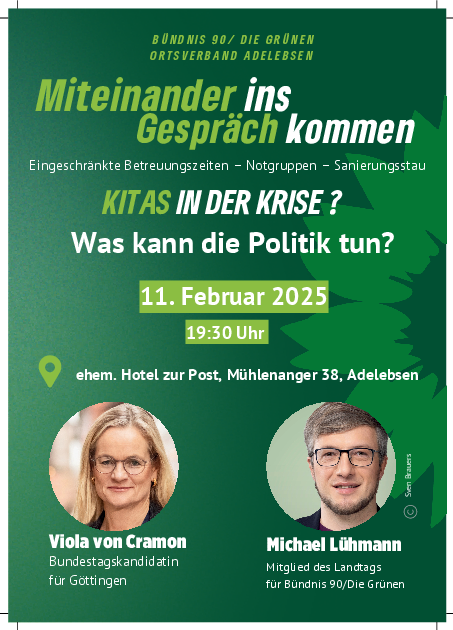 Viola von Cramon und Michael Lühman (MdL) sprechen über eingeschränkte Betreuungszeiten, Notgruppen und Sanierungstau.