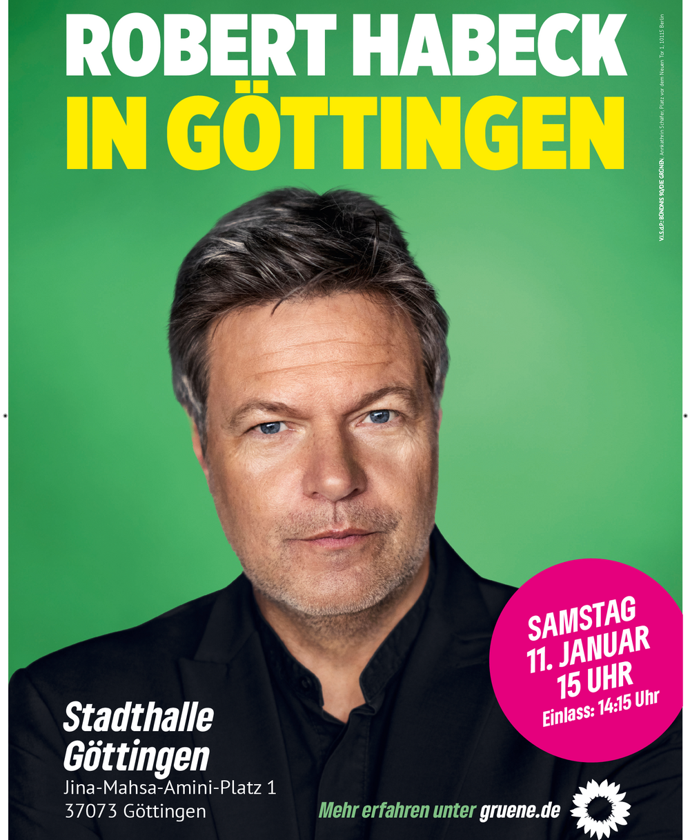 Der Spitzenkandidat von BÜNDNIS 90/DIE GRÜNEN, Robert Habeck, wird am Samstag, den 11. Januar 2025, eine Wahlkampfrede in der Stadthalle Göttingen halten. Der Einlass zur Veranstaltung beginnt um 14 Uhr, die Rede von Robert Habeck ist für 15 Uhr angesetzt. Der Einlass ist frei. Eine Anmeldung ist nicht nötig.