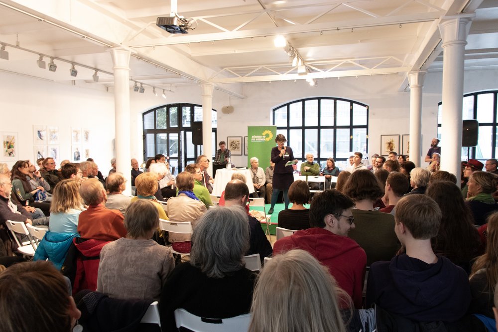 Um 19:00 Uhr ging es los in der alten Feuerwache in der Innenstadt: Ska Keller trat ins Rampenlicht und traf auf ca. 180-200! interessierte Zuhörer. Eine Fragerunde sollte stattfinden, moderieren tat diese der grüne Landtagsabgeordnete Stefan Wenzel, der den terminlich verhinderten Jürgen Trittin vertrat. Den Abend eröffnete dann kurz Ute Reichmann, welche Mitglied im Stadtvorstand ist, indem sie Ska Keller kurz vostellte.