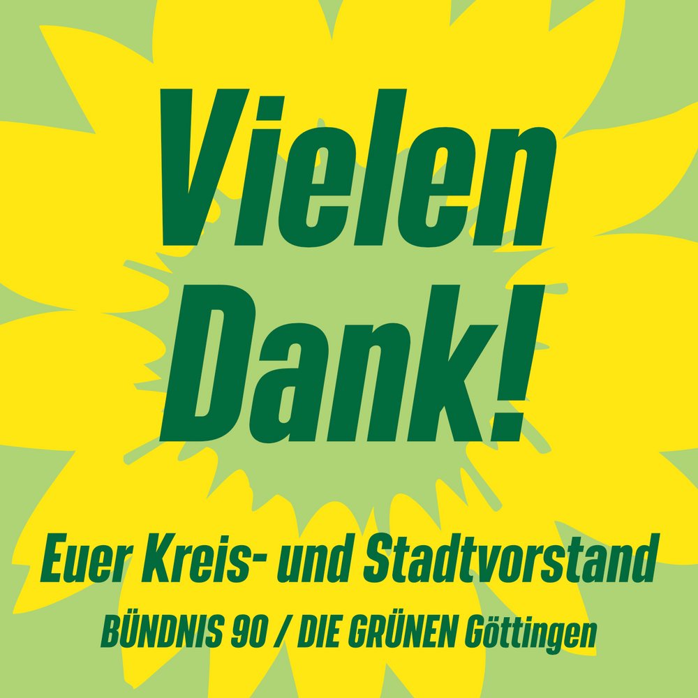 Abschließend möchten wir an riesiges Dankeschön an alle richten, die diesen Wahlkampf getragen und gemacht haben, an die GRÜNE JUGEND, das Greenteam, die Teams der Spitzenkandidat*innen, an alle Kandidierenden, an jede*n von euch, der*die am Wahlkampfstand und bei den Aktionen dabei war, Flyer verteilt hat, Fotos gemacht und Social Media bedient hat - danke für die vielen ehrenamtlichen Stunden und den großen, großen Einsatz. Ohne euch wäre dieser Wahlkampf nicht möglich gewesen!